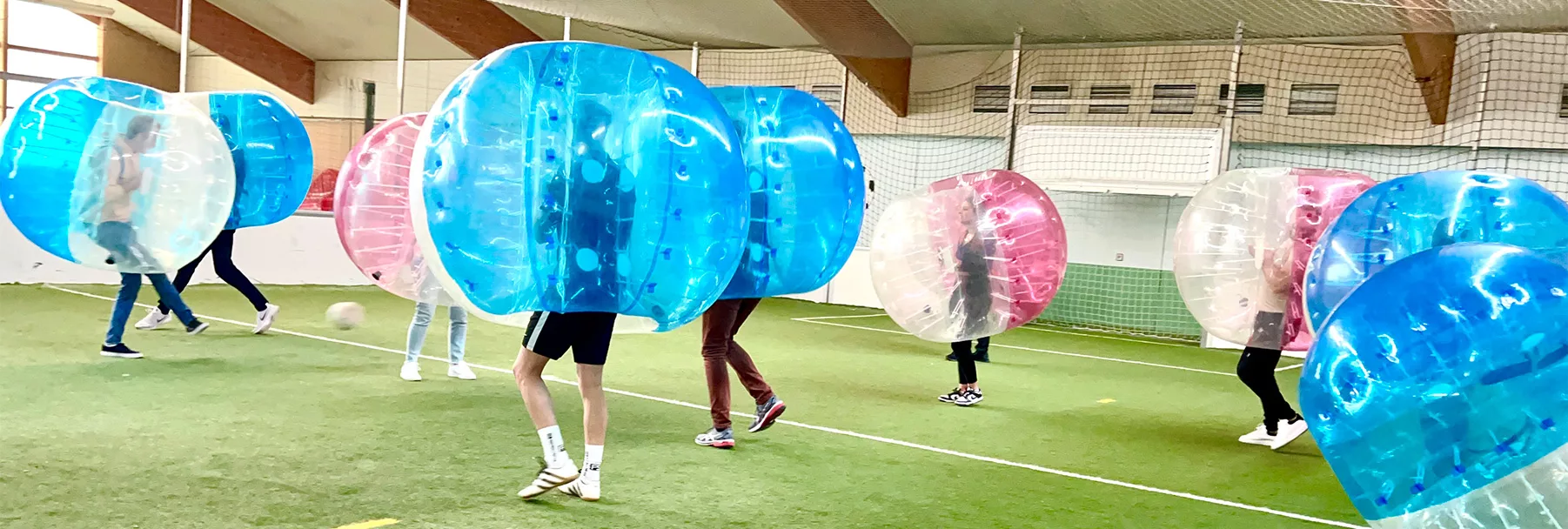 Bubbleball ist ein absoluter Blickfang und Spaßbringer. Wenn „gewöhnlicher“ Fußball nicht aufregend genug ist, dann ist Fußball in Bumperbällen genau das Richtige. Unsere Bubblebälle sind in verschiedenen Größen erhältlich, von Kindern ab ca. 8 Jahren bis hin zu „korpulenten“ Erwachsenen. In einem Turnier können pro Stunde bis zu 100 Personen teilnehmen.